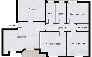 La superficie interna è così distribuita: ingresso in doppio soggiorno con cucina a vista , disimpegno che ci accompagna nella zona notte ove troviamo camera da letto, due camerette e doppio bagno di cui uno con doccia e l'altro con vasca. La doppia esposizione di questo appartamento ti permetterà di godere di una luce naturale meravigliosa in ogni momento della giornata. I balconi, offrono un doppio affaccio esterno e interno.