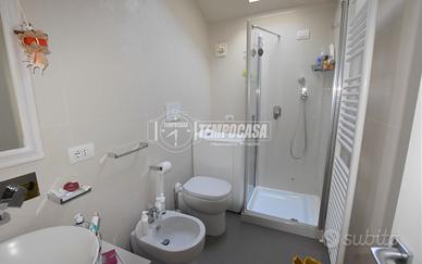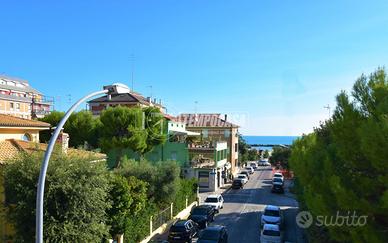 PORTO SAN GIORGIO - ZONA VIALE DELLA VITTORIA/PINETA SALVADORI - Al 2° ed ultimo piano di un piccolo edificio composto da sole 4 unità, appartamento di 68 mq composto da soggiorno con angolo cottura ed uscita sul balcone lato ovest (5,5 mq con tenda parasole e punto acqua), disimpegno notte, camera doppia, bagno finestrato con doccia e lavanderia, e camera matrimoniale con uscita sul balcone lato est (3 mq). INTERNO completamente ristrutturato nel 2012 utilizzando materiali di pregio ed arredo su misura; impianto elettrico e termoidraulico completamente rifatti e certificati, impianto di condizionamento canalizzato presente in tutti gli ambienti, infissi in legno e doppio vetro, portone blindato e parquet presente in tutti gli ambienti ad eccezione del bagno. N.B. L'immobile viene venduto completo di cucina ed armadiature realizzate su misura. ESTERNO in ottimo stato con balconi completamente ristrutturati nel 2016, e corte condominiale di accesso. Posizione esclusiva, distante soli 100 metri dalla spiaggia, ma comunque vicina a tutti i servizi di Piazza Torino. Quattro buoni motivi per acquistare questo immobile: 1) Completamente ristrutturato con finiture di pregio - 2) Vista mare - 3) Nessuna spesa di condominio - 4) Ottima posizione - Classe: E - IPE: 175.00 kWh/mq anno
