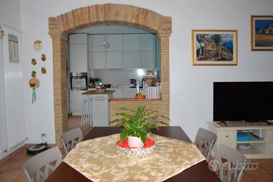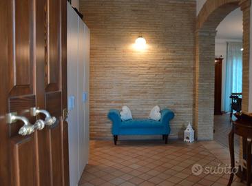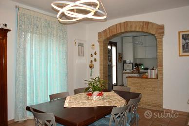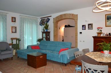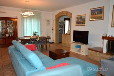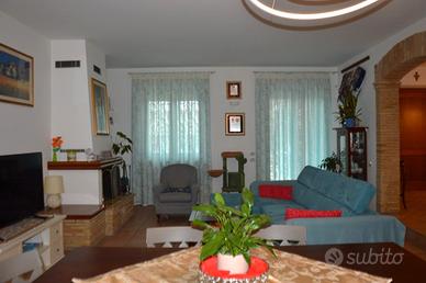 Ad un chilometro dal centro, proponiamo in vendita luminoso appartamento di mq. 125,00 circa con ingresso indipendente al piano terra di una bifamiliare. L'abitazione, ristrutturata con materiali di ottima qualità, ospita un ampio ed elegante salone con caminetto, la cucina abitabile a vista con ripostiglio/dispensa, due camere matrimoniali di cui una dotata di studio, una cameretta e doppi servizi. Un portico ad uso esclusivo all'ingresso, ideale per i tuoi momenti di relax all'aperto, ed un locale di sgombero completano l'offerta. L'unità immobiliare è fornita di impianto di climatizzazione e di allarme.