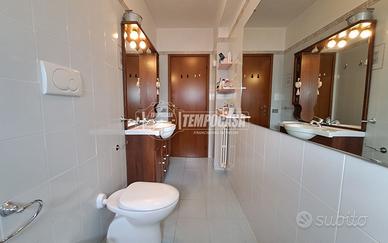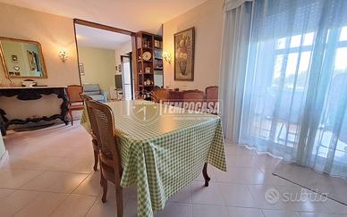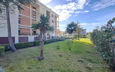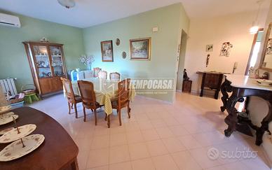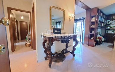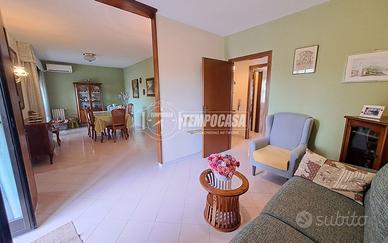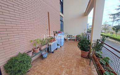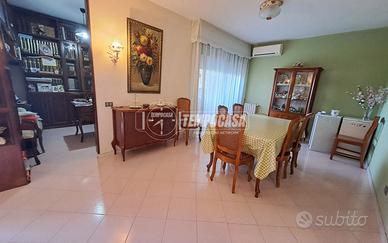 Viale Leonardo Da VINCI; Appartamento al piano rialzato di 110 mq composto da: ingresso, ampio soggiorno con balcone vivibile, corridoio / disimpegno, 3 camere da letto, studio / pluriuso, cucina abitabile con ulteriore balconcino, 2 Bagni e ripostiglio. Terrazzo a piano vivibile. Box Auto e Cantina al piano 1 / S. Posto auto assegnato nel cortile condominiale. Doppia Esposizione ! Buono Stato ! Stabile con ampio spazio verde chiuso e doppio cancello automatico. - Portone d'ingresso blindato, infissi in alluminio doppio vetro, Termo - Autonomo e Climatizzato. - Classe: G - IPE: 158.99 kWh/mq anno