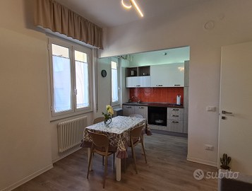 L'appartamento di 55 mq., ristrutturato di recente, è un bilocale ben arredato e luminoso, con esposizione a sud-est, composto da ingresso con cabina armadio, camera matrimoniale con balcone, angolo cottura e soggiorno con divano letto e TV, dotato di servizio igienico finestrato con doccia e sgabuzzino con lavatrice.