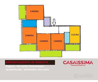 In una delle aree più residenziali e tranquille di Pagani, nella zona Variante, proponiamo in vendita un ampio appartamento di circa 125 mq situato all'interno di un elegante parco privato. L'immobile si trova in un contesto curato e riservato, caratterizzato da palazzine ben tenute e da un'atmosfera serena, ideale per chi desidera vivere in un ambiente sicuro e lontano dal traffico, pur restando a pochi minuti dal centro e dai principali servizi. L'appartamento offre spazi ampi e ben distribuiti, con ambienti luminosi e una disposizione funzionale che garantisce comfort e vivibilità. È composto da quattro camere, una cucina abitabile e due bagni, perfetti per soddisfare le esigenze di una famiglia. L'abitazione dispone inoltre di quattro balconi disposti su due lati ad angolo, che assicurano un'eccellente luminosità e una piacevole doppia esposizione. A completare la proprietà vi sono un sottotetto di pertinenza, utile come spazio aggiuntivo, un box auto di circa 18 mq e un posto auto all'interno del parco, che assicurano comodità e praticità. La posizione, in un quartiere residenziale molto apprezzato di Pagani, rappresenta un ottimo equilibrio tra tranquillità e vicinanza ai principali collegamenti e servizi. Una soluzione ideale per chi cerca una casa spaziosa, luminosa e confortevole, in un contesto signorile e ben curato.