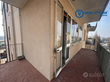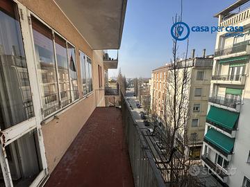 TIPOLOGIA E CARATTERISTICHE: Si tratta di un appartamento di grande superficie, al piano quinto di sei, affaccia da un lato sul corso del Popolo e dall'altro sul fronte opposto, libero su tre lati, con due balconi, completo di garage al piano interrato.