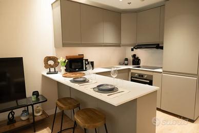 60mq curati in ogni dettaglio, con zona giorno open space, cucina di design con piano a induzione, camera da letto accogliente e bagno elegante. Ambienti luminosi, materiali premium e dotazioni complete per un comfort immediato.