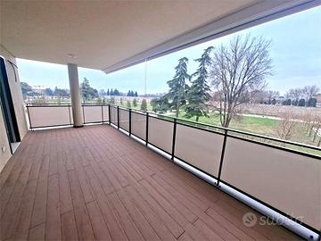L'immobile, dal design moderno e dotato di finiture pregiate, si compone di: ingresso, luminoso ed ampio soggiorno con accesso diretto al terrazzo panoramico coperto, cucina abitabile già arredata con uscita sul terrazzo, disimpegno, 3 camere da letto, di cui una matrimoniale con balcone privato, cabina armadio e servizio esclusivo, una seconda camera matrimoniale con balcone e terza camera doppia, ulteriore bagno finestrato con doccia a vista e balcone. Completa la proprietà una ampia cantina di oltre 20 mq al piano scantinato.