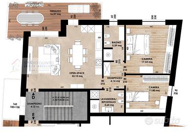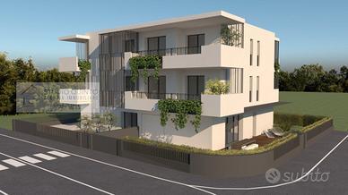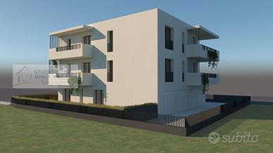 Appartamento al secondo e ultimo piano di nuova costruzione in classe A4 con terrazza abitabile. L'appartamento è così composto: ingresso e zona giorno open-space provvista di porta finestra che permette l'accesso alla terrazza abitabile. Dal disimpegno accediamo alla zona notte dove trovano posto una camera matrimoniale, una seconda camera, la lavanderia/ripostiglio e un secondo bagno finestrato con box doccia. A completare la proprietà il garage con basculante elettrico al piano terra. Tecnologie: - impianto fotovoltaico; - riscaldamento a pavimento; - pompa di calore; - avvolgibili motorizzati e possibilità di installare tende filtranti; - predisposizione per impianto di climatizzazione; - ricariche auto elettrica in ogni garage; - impianto elettrico con tv-sat e videocitofono; - predisposizione per impianto d'allarme volumetrico e perimetrale; - predisposizione VCM; - predisposizione videosorveglianza sulle terrazze; - predisposizione elettrificazione tenda esterna. Costruzioni e rifiniture: - sistema costruttivo a setti e pilastri in cemento; - isolamento con cappotto esterno EPS da 14 cm. e internamente con pannello in cartongesso doppialastra con interposta lana di roccia; - gres porcellanato nella zona giorno e legno nella zona notte; - finiture interne a scelta; - frangisole verticale in metallo a chiusura delle terrazze e come motivo di facciata. Palazzina di sole cinque unità. Zona tranquilla e servita. In costruzione, consegna prevista per febbraio 2026. Per i nostri clienti, offriamo consulenza finanziaria gratuita. Il nostro ufficio è aperto dal Lunedì al Sabato. Lun-Ven dalle 09.00 alle 12.30 e dalle 15.00 alle 19.30 Sab. su appuntamento dalle 09.00 alle 13.00 Tel: