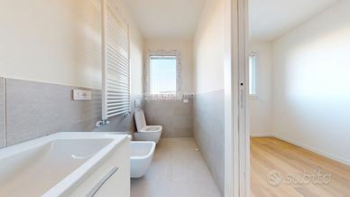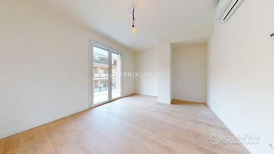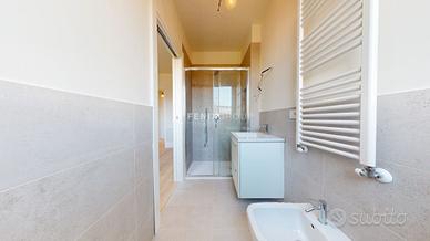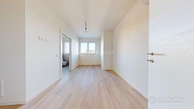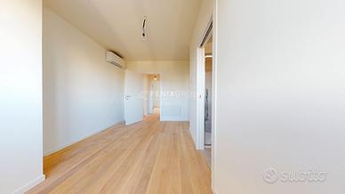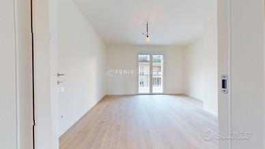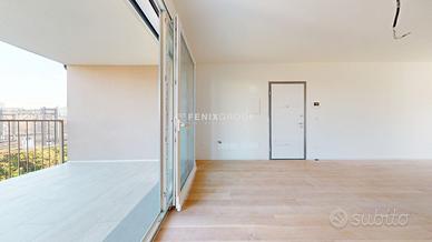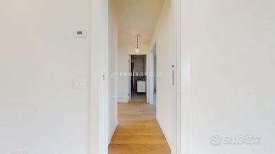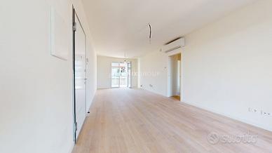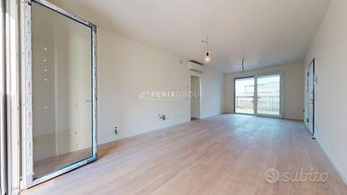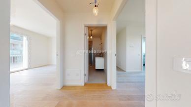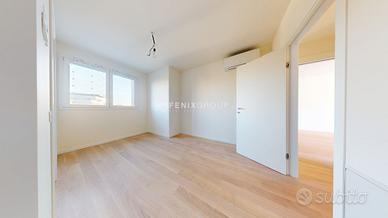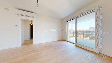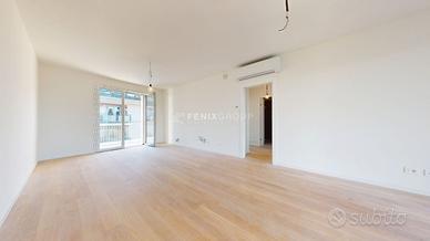 FenixGroup propone in vendita un trilocale di circa 108 mq posto al terzo piano di una palazzina di nuova costruzione in via Clitumno 8.L'ingresso conduce direttamente all'ampia zona giorno con soggiorno e cucina a vista, uno spazio accogliente e molto luminoso grazie alla presenza di due accessi esterni opposti che garantiscono luce naturale per tutto l'arco della giornata. Da un lato si accede a un terrazzo ampio e vivibile con affaccio interno, dall'altro a un secondo terrazzino, anch'esso sfruttabile, che si sviluppa lungo il lato dell'abitazione e mette in comunicazione il soggiorno con una delle camere da letto; su questo terrazzino è presente anche un pratico piccolo ripostiglio.Un disimpegno separa in modo funzionale la zona notte, composta da due camere spaziose e luminose. La prima affaccia sul terrazzino collegato alla zona giorno, mentre la seconda è dotata di finestra e bagno finestrato en suite con doccia. A servizio dell'abitazione è presente un secondo bagno, ampio e moderno, completo di doccia e sanitari. Completano la proprietà una cantina e un posto auto di pertinenza.La soluzione si distingue per la qualità della nuova costruzione, la razionale distribuzione degli spazi e la presenza di terrazzi vivibili, ideali per chi desidera comfort e luminosità in un contesto residenziale moderno.L'edificio è servito da ascensore e costruito in classe energetica A, grazie a una combinazione di tecnologie avanzate e materiali di alta qualità. Le principali caratteristiche includono:* Cappotto termico su tutta la struttura, con isolamento anche delle parti esterne* Serramenti in PVC ad alto isolamento termico e acustico, con vetrocamera basso emissivo* Balconi impermeabilizzati e progettati per garantire durabilità e resistenza* Tapparelle motorizzate con comando centralizzato e zanzariere manuali* Porte d'ingresso blindate per tutte le unità* 24 pannelli fotovoltaici sul tetto* Impianto di riscaldamento a pavimento con sistema idronico a pompa di calore* Sist