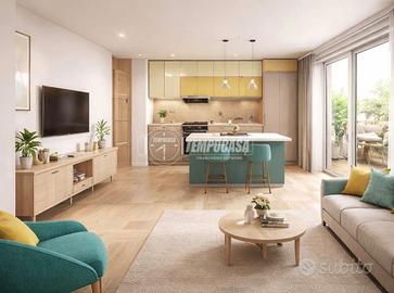 Dal punto di vista impiantistico, l'appartamento è dotato di impianto di riscaldamento a pavimento, che assicura un comfort termico elevato e una distribuzione uniforme del calore. È presente una caldaia autonoma a condensazione, sinonimo di efficienza energetica e riduzione dei consumi. Inoltre, è già predisposta l'installazione dell'impianto di aria condizionata sia nella zona giorno (soggiorno/cucina) sia nelle camere da letto.L'impianto elettrico è completo, moderno e conforme alle normative vigenti, mentre l'impianto videocitofonico aggiunge un ulteriore livello di sicurezza e comodità. I serramenti in PVC garantiscono un eccellente isolamento termico e acustico, contribuendo al benessere abitativo.