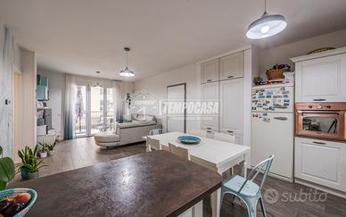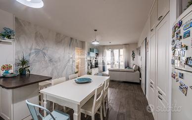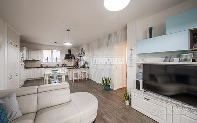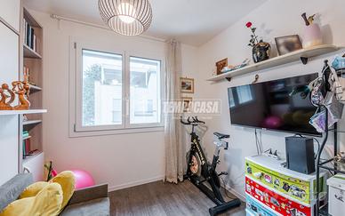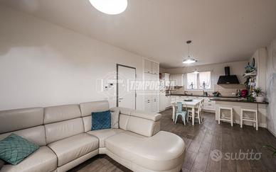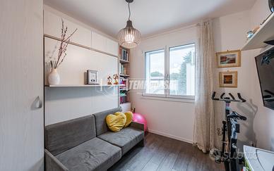 La cucina e il salotto unite in un unico ambiente offrono spazi comodi e funzionali per tutta la famiglia. L'immobile inoltre è dotato di infissi in pvc/triplo vetro, tapparelle automatizzate, videocitofono, impianto di allarme, porta blindata e porte interne bianche.