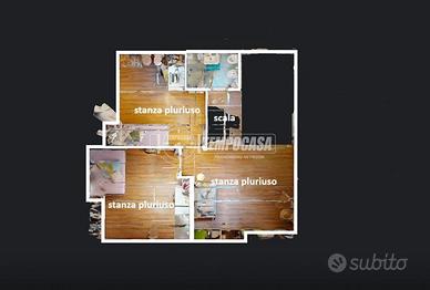 L'appartamento è così composto: troviamo ampia terrazzo/pianerottolo, ingresso/zona giorno accogliente, cucina abitabile, disimpegno, camera matrimoniale e cameretta, un ampio balcone e bagno. Tramite una scala tibetana si accede a una mansarda, dotata di tre ampie stanze e servizi.