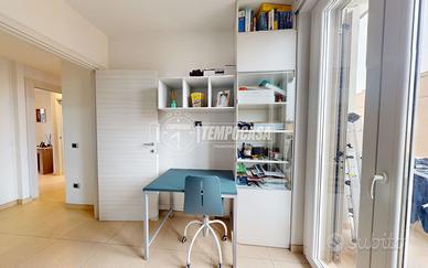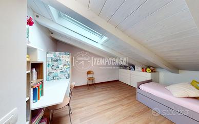L'appartamento è così composto: troviamo ampia terrazzo/pianerottolo, ingresso/zona giorno accogliente, cucina abitabile, disimpegno, camera matrimoniale e cameretta, un ampio balcone e bagno. Tramite una scala tibetana si accede a una mansarda, dotata di tre ampie stanze e servizi.