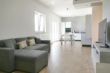 Appena varchi la soglia d'ingresso, ti accoglie un ampio soggiorno con cucina a vista, perfetto per rilassarti o condividere momenti speciali con amici e familiari. Da qui si accede a un balcone vivibile, ideale per godersi un po' di tempo all'aperto. Il disimpegno conduce alla zona notte, dove trovi una comoda camera matrimoniale, una cameretta pensata per i più piccoli o da utilizzare come studio, e un bagno moderno con ottime finiture . Un secondo balcone, accessibile dalla zona notte, include una pratica zona lavanderia.