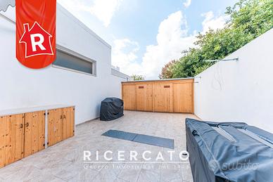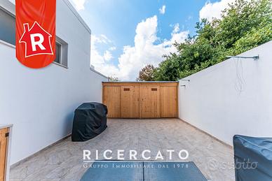 Gruppo Ricercato Immobiliare propone in vendita una moderna abitazione di recente costruzione (2022), inserita in un piccolo contesto residenziale composto da sole tre unità abitative. Un'opportunità ideale per chi cerca tranquillità senza rinunciare alla comodità dei servizi. L'abitazione si apre su un comodo ingresso che conduce a un ampio e luminoso soggiorno con zona pranzo e angolo cottura, un ambiente accogliente e ben organizzato, ideale per chi ama gli spazi conviviali. Un comodo bagno cieco completa la zona giorno, attrezzato con tutti i sanitari e dotato di impianto di aspirazione forzata. Un piccolo disimpegno separa la zona notte, dove si trovano due camere da letto matrimoniali, entrambe spaziose e confortevoli, affiancate da un secondo bagno finestrato, elegantemente rifinito e pensato per garantire il massimo comfort quotidiano. A dare luce arricchendo all'intera soluzione, due spazi esterni vivibili e ben curati. Nella parte anteriore, uno scoperto con veranda accoglie all'ingresso principale e si collega ad un'area comune dove è presente un posto auto privato di circa 10 mq, ideale per tenere al sicuro la propria auto. Sul retro, un ulteriore spazio all'aperto garantisce privacy e relax, valorizzato dalla presenza di una copertura ombreggiante che lo rende riservato e perfetto per momenti intimi o di svago. Dal punto di vista energetico, la casa si distingue per l'elevata efficienza, grazie alla classe energetica C e all'impiego di impianti di ultima generazione, che assicurano comfort e risparmio. Questa abitazione rappresenta la soluzione ideale per chi desidera vivere in un ambiente moderno, funzionale e indipendente, dotato di ogni comfort e caratterizzato da spazi ben progettati, sia all'interno che all'esterno. Inoltre gode di una posizione perfetta in quanto locata in una zona è in forte espansione, con nuove infrastrutture come supermercati, aree verdi, piste ciclabili, e ben collegata alle tangenziali. Nonostante la vicinanza ai principali