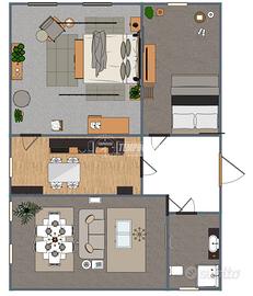 Composizione: ingresso, soggiorno, cucina abitabile, due camere da letto e bagno.
