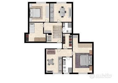 Il primo appartamento è composto da cucina, camera da letto, cabina armadio e bagno, mentre il secondo dispone di ingresso, cucina, camera da letto, cameretta e bagno. Grazie alla doppia esposizione, gli ambienti risultano luminosi e ben arieggiati, garantendo comfort e vivibilità in ogni spazio. A completare la soluzione posto auto all'interno dello spazio comune.