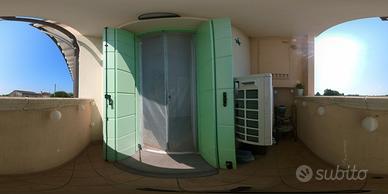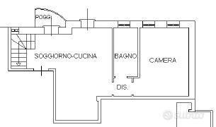 al primo livello la zona giorno open-space con angolo cottura di 25 mq con terrazzino privato, la camera matrimoniale e il bagno finestrato con doccia, quest'ultimo completamente ristrutturato nel 2024.