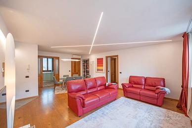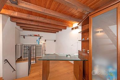 Appartamento duplex (arredato) con ingresso dalla via pedonale E. Aubert, posto al terzo piano e composto da ingresso, soggiorno, cucina, camera matrimoniale, bagno, ripostiglio, locale caldaia e balcone esposto a sud; collegati da scala interna uno studio al piano quarto e un sottotetto non abitabile.