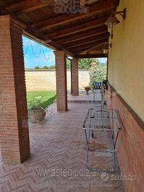 Vendita all'asta Senza incanto, con gara telematica asincrona - LOTTO UNICO: Piena ed esclusiva proprietà 1000/1000 di compendio pignorato. Trattasi di un fabbricato monofamiliare, costituito da 2 piani fuori terra ed un terreno pertinenziale parzialmente pavimentato e parzialmente adibito a giardino. In esso è ubicata una piscina di pertinenza con relativi servizi per attrezzi e macchinari. Infine sono presenti n. 2 tettoie per il ricovero di auto e n. 1 gazebo adiacente la piscina. Prezzo base € 228.096,00 (offerta minima € 171.072,00). Data inizio operazioni di vendita: 25/03/2026 ore 15:00.