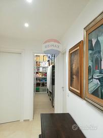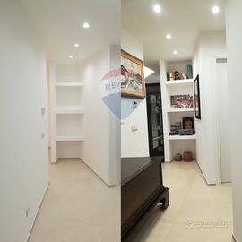 L'immobile si apre su un ingresso-guardaroba ed un luminosissimo living, spazioso ed accogliente con arredi su misura e controsoffitti con led ad incasso su tutta la superficie. Una finestra e un balcone. La zona cucina è completamente attrezzata con elettrodomestici di fascia medio alta unico marchio, piani di lavoro in Okite e cappa con impianto autonomo di aspirazione. L'immobile si completa con tre comode camere nella zona notte: una con finestra e balcone, le altre due con grandi finestre ed armadi a muro. Due bagni: Bagno padronale nella zona notte con vasca e doccia, rivestimento unico. Secondo bagno completo, nella zona giorno con doccia e lavanderia. Grande rispostiglio.