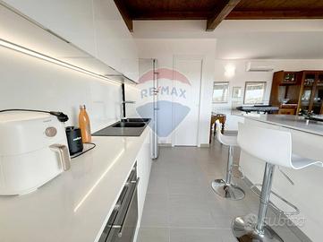 Lingresso dell'appartamento conduce ad una spaziosa e luminosa cucina-soggiorno collegata ad una veranda dalla quale è possibile scorgere il mare.