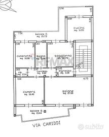 Rif: 40791118-74 Classe energetica: G - EPglnr: 566.00 kWh/m² A soli 800 metri dal mare, presentiamo in vendita un ampio appartamento situato in Via Cariddi 26, nel comune di Erice - zona Casa Santa, all'interno di un piccolo e riservato contesto condominiale composto da sole tre unità abitative. La posizione, al terzo ed ultimo piano (senza ascensore), garantisce luminosità, tranquillità e ambienti ariosi. L'immobile si sviluppa su una superficie di circa 124 mq e si distingue per gli spazi ampi e ben distribuiti, arricchiti da balconi molto spaziosi che permettono di vivere piacevolmente anche gli spazi esterni. Lingresso conduce ad un grande e luminoso salone con affaccio su uno dei balconi principali, ideale per momenti di relax. Il soggiorno è comunicante con la cucina abitabile, che dispone dellaccesso diretto ad un secondo ampio balcone, creando una zona giorno luminosa, funzionale e piacevole da vivere. La zona notte ospita una luminosa camera matrimoniale, una cameretta, un bagno e un pratico ripostiglio. Completa la proprietà un posto auto nellarea esterna condominiale. Lappartamento è attualmente locato, rappresentando quindi uninteressante opportunità di investimento con rendita immediata. Situato in una zona tranquilla e servita del comune di Erice, limmobile consente di raggiungere il mare in pochi minuti, rendendolo ideale sia come abitazione principale sia come investimento.