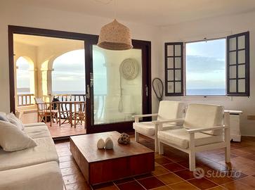 La casa posta ad angolo, come la prua di una nave, è orientata a Nord, Est e Sud, risultando particolarmente luminosa e ben ventilata. Con una superficie di 73 mq al piano disimpegno, più soffitta di 25 mq. È stato progettato per massimizzare la luce naturale e la vista sul mare. Dispone di due camere da letto, due bagni completi con doccia e una zona soggiorno, pranzo e cucina a pianta aperta, ideale per la vita familiare e l'intrattenimento. La casa è in buone condizioni, pronta per essere abitata e goduta dal primo momento.