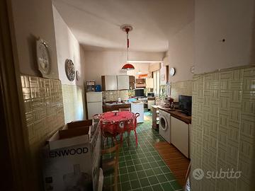ampio ingresso, tre saloni comunicanti da ampie aperture come da foto, ampia cucina aitabile con riposto e dispensa, bagno con doccia, 3 ampie camere matrimoniali. bagno con vasca. 2 balconi su strada, 1 balcone interno.