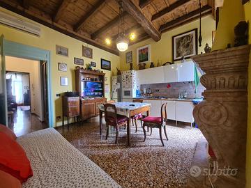 Nel cuore di un prestigioso palazzo storico del XVI secolo, proponiamo l'intero piano nobile, frutto di un restauro conservativo di grande livello. I pavimenti in marmo veneziano e gli alti soffitti a cassettone con travature autentiche contribuiscono a creare un'atmosfera di eleganza senza tempo, che si combina perfettamente con un'accoglienza calda e intima. Gli spazi sono stati studiati per offrire comfort e funzionalità: l'ingresso, si apre su un soggiorno molto luminoso di circa 26mq decorato da due grandi finestre in stile Belle Époque che affacciano su un piccolo terrazzino, da cui si può godere di una suggestiva vista sul Castello e sulla piazza. La zona giorno si completa con la cucina abitabile, impreziosita da un grande camino in marmo, perfetta per gli incontri familiari e momenti di convivialità. La zona notte, raggiungibile tramite un disimpegno, comprende una camera principale di circa 18mq con bagno privato e vasca idromassaggio, e una seconda stanza di circa 14mq, collegata a un secondo bagno con doccia. La distribuzione degli ambienti consente di vivere con privacy, in un contesto storico di grande valore artistico e architettonico. Rif. E50 A tutela della privacy, l'indirizzo indicato non corrisponde all'esatta posizione dell'immobile. Per maggiori informazioni chiamare la nostra sede Professionecasa di Este in Via Principe Umberto, 51 al numero