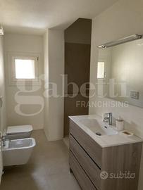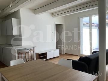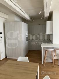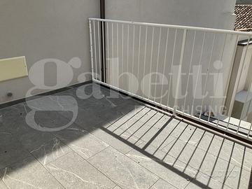 Sala grande con zona cucina in nicchia ed affaccio su BEL TERRAZZO VIVIBILE, 2 bagni, 3 spaziose letto e GRAZIOSO SOPPALCO ideale come studio.