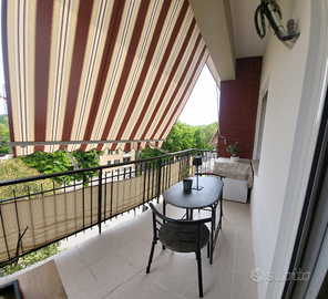 ZONA GIORNO , ampio open space e lavanderia totale 50mq . Infissi doppio vetro e legno compresi di zanzariere . Balcone di 7mq circa