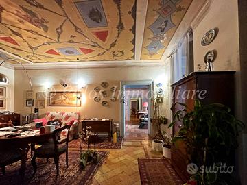 Rif: 113899 Classe energetica: G Elegante. Prezioso. Comodo. Centro Storico. In una delle più tranquille e comode zone del centro storico, ad un passo dal Liceo Classico Statale Annibal Caro e dalla Piazza del Popolo, proponiamo un prestigioso appartamento ubicato al piano primo oltre agli ampi locali al piano terra caratterizzati da ampie volte reali. Ben curate le parti comuni, la facciata esterna dellintero edificio è stata oggetto di recente ristrutturazione. Salendo la prestigiosa ed elegante scala in marmo si accede allappartamento distribuito su più comodi spazi e gradevoli vani, disimpegno allingresso, due ampi e luminosi salotti, cucina con retrocucina, comoda zona notte è costituita da un'ampia camera padronale con bagno, altre due grandi camere, bagno di servizio e ripostiglio. Tutta labitazione è impreziosita dal fantastico pavimento in cotto antico e dagli avvolgenti affreschi sui soffitti, infissi interni ed esterni in legno, impianti dellepoca. Completa la proprietà i locali con volte al piano terra attualmente utilizzati come deposito, spazi che possono essere adattati a piacimento come studio, sala relax, sala TV o musica. L'immobile si trova in centro storico allinterno di un suggestivo vicolo dal grande sapore storico.
