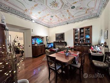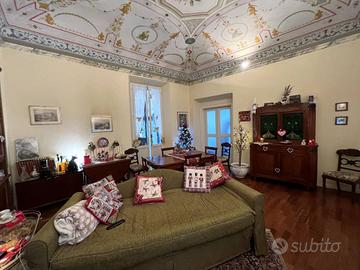 Rif: VV78 L'Immobiliare Unika propone in vendita nel Centro Storico di Fermo, antica dimora di circa 235 mq più terrazzo e balconi, dove nacque uno dei più importanti personaggi fermani. L'unità abitativa è collocata al piano primo, accessibile da una grande scalinata e si compone di ingresso, salone di rappresentanza con balcone vista mare, secondo soggiorno con e ampia terrazza con vista centro storico, cucina separata con retro, grande studio/camera con soppalco attrezzato e bagno interno, disimpegno notte, camera padronale, terza camera e bagno principale. Caratterizzano questa esclusiva proprietà soffitti affrescati, cotto, parquet, travi a vista, donando all'abitazione un'eleganza senza tempo. Proprietà di rara reperibilità nel centro storico. L'immobile è inserito in un palazzo nobile che sarà oggetto di importanti interventi di ristrutturazione e consolidamento con rifacimento integrale del tetto del fabbricato, al fine di apportare un notevole miglioramento sismico di tutto lo stabile. Possibilità di accorpare delle spettacolari grotte e cantine, completamente restaurate, con eleganti volte a vista. Siamo a disposizione per ulteriori informazioni o sopralluoghi. Classe energetica "in fase di valutazione". RIF. VV78. Unika Immobiliare -