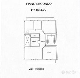 Ficarazzi, Via Francesco Ingrassia. Lo stabile conta due piani di altezza, si presenta in buone condizioni e non è dotato di ascensore. Limmobile oggetto di vendita è posto al secondo piano, impegna una superficie catastale di 125 mq commerciali ed è cosi composto: ingresso su corridoio, cucina abitabile con balcone, ampio salone, due servizi igienici uno con doccia ed uno con vasca, un ripostiglio e tre camere da letto.