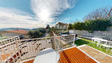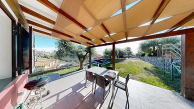 Gli spazi esterni sono un invito al relax: un giardino privato dove godersi la natura, terrazzi panoramici affacciati sul mare e sulle colline, perfetti per colazioni lente, cene al tramonto o momenti di pura contemplazione. I posti auto completano la proprietà, garantendo praticità e comfort.