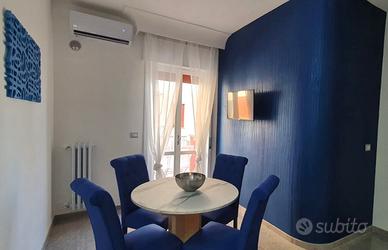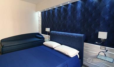 Arredato con gusto, sono presenti nell'immobile oggetti di design dai lampadari ai comodini con rifiniture uniche e particolari nei toni del blu che rendono il tutto armonioso e di classe.
