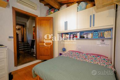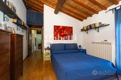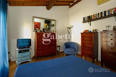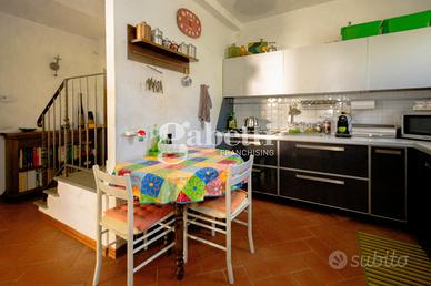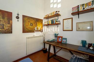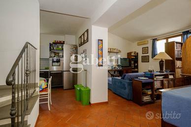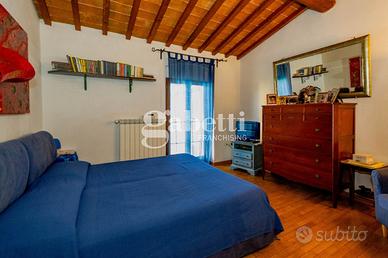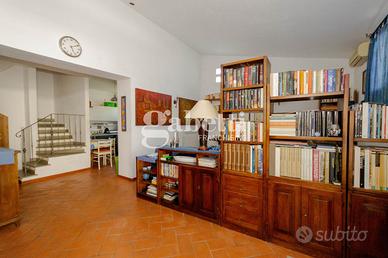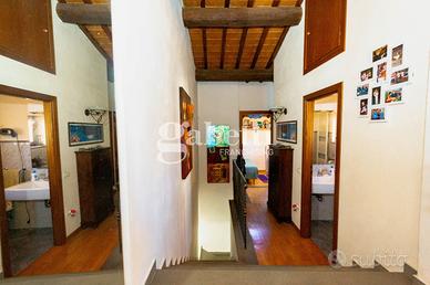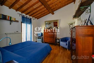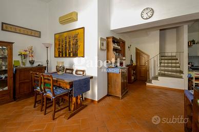 San Bartolo a Cintoia, in interno tranquillo e silenzioso immerso nel verde, proponiamo in vendita quale porzione di un complesso colonico un terratetto di cinque vani di circa 125 mq, dotato di giardino esclusivo di 105 mq circa in parte carrabile, con posto auto privato, all'interno di un'area chiusa dotata di cancello automatico. L'immobile si presenta in ottimo stato, ed è disposto su due livelli, al primo livello al piano terra risulta composto da un ingresso su un'ampia zona giorno da cui si accede al giardino, una cucina aperta sulla sala ma separata, un primo bagno e un ripostiglio/lavanderia, al primo ed ultimo piano due camere e una singola o vano guardaroba, due servizi, oltre soppalco. L'immobile si presenta in ottimo stato e in stile toscano, con travi a vista e cotto; la presenza del giardino permette di trascorrere dei bei momenti di relax in mezzo al verde. Risulta molto adatto a famiglie sia per il tipo di immobile sia per la vicinanza a tutti i servizi.