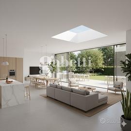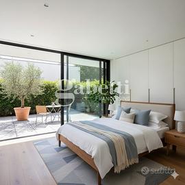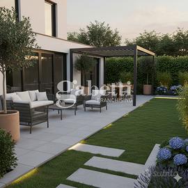 In zona tranquilla e riservata, trilocale di nuova costruzione posto al piano terra di una villa bifamiliare, dotato di ingresso indipendente e ampi spazi esterni di proprietà esclusiva. L'immobile si compone di luminoso soggiorno con angolo cottura, due camere matrimoniali (una delle quali con bagno privato finestrato e doccia) e secondo servizio. La zona giorno affaccia su un resede tergale di circa 46 mq, perfetto per pranzi all'aperto o momenti di relax, mentre l'accesso principale all'immobile avviene tramite resede frontale di circa 30 mq, corredato da loggia coperta. Completano la proprietà un giardino privato di 75 mq e una taverna di circa 28 mq collegata tramite scala esterna; ambiente versatile e ben rifinito, ideale come zona hobby, studio o locale di servizio. Soluzione ideale per chi desidera indipendenza, comfort e spazi esterni vivibili, in un contesto residenziale tranquillo ma vicino ai principali servizi.