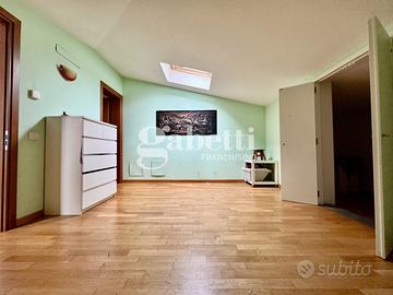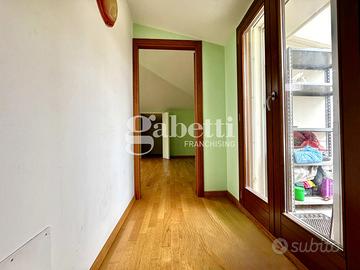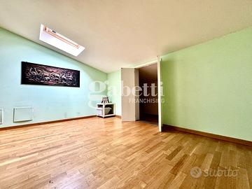 Dalla zona giorno tramite una scala a chiocciola si accede ad un' ampia soffitta finestrata di cui una parte adibita a seconda camera da letto, bagno finestrato con doccia, ampio ripostiglio e terrazza