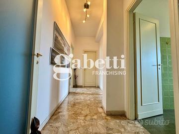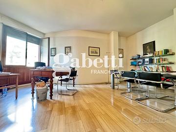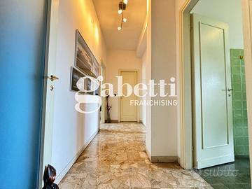 L'appartamento - che presenta una netta separazione fra zona giorno e zona notte - è così composto: Ingresso su ampio disimpegno direttamente collegato a generoso salone con più di 27 mq, ripostiglio, cucina abitabile e lavanderia. Nella zona notte troviamo un grande bagno finestrato, due camere da letto matrimoniali ed ulteriore ripostiglio. Possibilità di ricavare la terza camera ed il secondo bagno. Riscaldamento centralizzato.