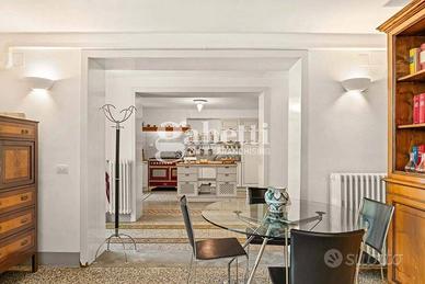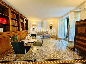 STATUTO, in uno dei contesti residenziali più ricercati di Firenze, proponiamo in vendita un esclusivo villino dei primi del '900, libero su tre lati e disposto su quattro livelli, per una superficie complessiva di circa 400 mq. Un immobile raro per tipologia e fascino, in eccellenti condizioni, capace di coniugare il prestigio della residenza storica con il comfort dell'abitare contemporaneo. Al piano terra, la zona giorno si sviluppa in spazi ampi e luminosi: un salone doppio di rappresentanza, sala da pranzo, cucina abitabile con accesso diretto al giardino e alla terrazza, oltre a un elegante bagno di cortesia. La zona notte, al primo piano, accoglie quattro camere matrimoniali, di cui una con cabina armadio e una con balcone affacciato sul verde, servite da due bagni finestrati rifiniti in marmo. Il piano mansardato, raffinato open space di circa 90 mq con travi a vista e parquet chiaro, è valorizzato da cinque velux che donano grande luminosità, oltre a un bagno e una cucina a scomparsa: un ambiente versatile, ideale come studio privato, area relax o appartamento indipendente. Il piano seminterrato, anch'esso abitabile e collegato direttamente al giardino, ospita soggiorno con angolo cottura, camera matrimoniale, bagno, lavanderia e vano polifunzionale, rappresentando una soluzione perfetta per accogliere ospiti o come unità autonoma da mettere a reddito. Completano la proprietà un ampio box auto finestrato di circa 24 mq e il meraviglioso giardino pavimentato di 400 mq, elegante e di facile manutenzione, che offre privacy e vivibilità in ogni stagione. Dettagli di pregio come i pavimenti originali d'epoca, gli infissi in legno con vetrocamera, i bagni in marmo e un impianto di riscaldamento autonomo suddiviso in più zone contribuiscono a rendere questa dimora un connubio perfetto tra charme storico e funzionalità moderna. Una residenza di rara eleganza, pensata per chi desidera vivere Firenze in una cornice esclusiva e senza tempo.