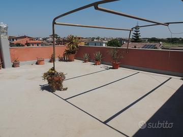 Fiumicino Isola Sacra, adiacente via Trincea delle Frasche, traversa di via S. Accorsi, in piccolo stabile appartamento al 1° piano, ampia metratura residenziale, tripla esposizione, vista e affaccio aperto, divisibile in 2 unità, da ristrutturare, composto da ampio ingresso, salone con camino, cucina abitabile, 3 camere, 2 bagni (entrambi con finestra, 1 con vasca e 1 con doccia), ripostiglio, 2 balconi di mq 10 l'uno, lastrico solare di proprietà adibito a terrazza di mq 126, garage di mq 23 con corte esclusiva di mq 30 ed entrata carrabile indipendente (rispetto all'appartamento), possibilità di parcheggiare 3 auto nella corte;