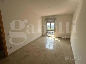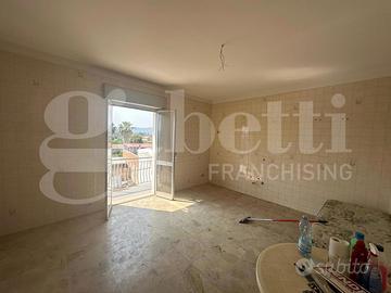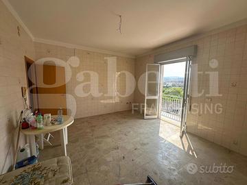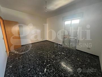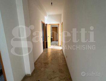 Il trivani, in discrete condizioni e con rifiniture dell'epoca, ha ingresso sul corridoio, grande salone con primo balcone condiviso, cucina abitabile con il secondo balcone condiviso, bagno principale con vasca e finestra, doppio servizio con spazio per la lavatrice e box doccia e finestra, camera matrimoniale con accesso al primo balcone condiviso, camera da letto con accesso al secondo balcone condiviso, ripostiglio. Completa la casa il posto auto singolo coperto (presente nel garage comune di 229 mqc, dove è presente anche lo sgabuzzino) e la terrazza comune.