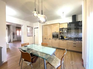 Questo splendido e luminoso appartamento al Piano Rialzato, con i suoi comodi 5 locali e 2 bagni (119 mq ca), ti accoglie subito con un'atmosfera di eleganza e comfort. Ristrutturato nel 2023, vanta una cucina abitabile con accesso al terrazzo che si affaccia sul rigoglioso giardino condominiale, un luminoso soggiorno con ampia terrazza abitabile, 2 camere matrimoniali, una cameretta, 2 bagni e un pratico armadio a muro.