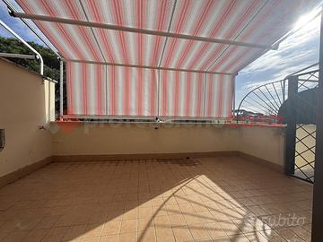 L'ingresso principale dell'immobile avviene attraverso un cancelletto pedonale che ci conduce mediante la scalinata esterna nell'ampia terrazza esterna, laddove grazie alla presenza di tende da sole, si può cenare all'aria aperta in tutta privacy.