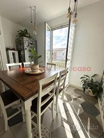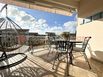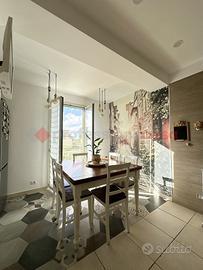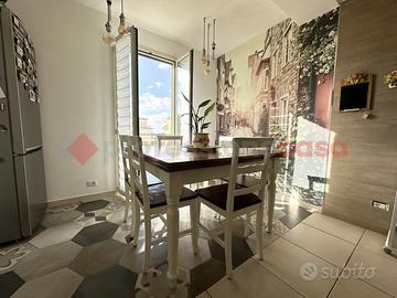 L'ingresso si apre su un ampio soggiorno con cucina a vista e zona pranzo, ambiente accogliente e funzionale, con accesso diretto a un terrazzino vivibile, perfetto per pranzi all'aperto o momenti di relax.