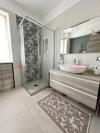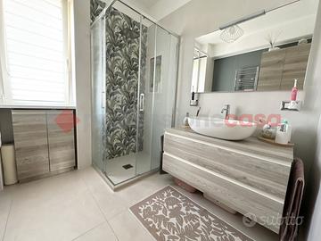 La zona notte è composta da una camera matrimoniale spaziosa, una comoda cameretta e un bagno con doccia completamente ristrutturato, elegante e dotato di finiture moderne.