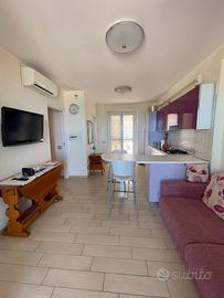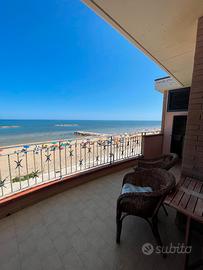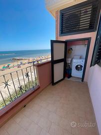 Proponiamo in locazione un grazioso appartamento fronte mare di 70 mq con box auto arredato su Lungo mare Nord. L'appartamento e' composto al suo interno di un soggiorno con cucina con accesso al terrazzo, 2 camere da letto di cui una con terrazzo, bagno. Box auto di 20 mq
