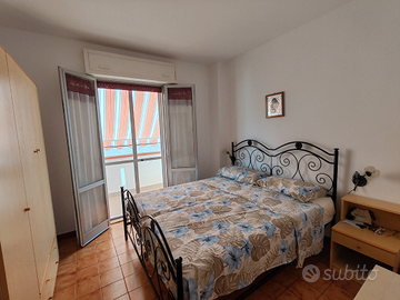 Vendesi appartamento di 50 mq con posto auto a 80 m circa dal mare. L'immobile è posto al 2° piano di una palazzina sita in via del faro n. 35, completamente ammobiliato, è composto da: soggiorno, cucinino, una camera da letto, una cameretta, un bagno, un ripostiglio e due balconi.La casa è dotata di aria condizionata tende da sole, zanzariere e finestre in alluminio. Il posto auto presente nel cortile condominiale è di pertinenza dell'appartamento.