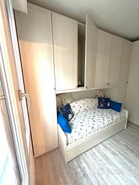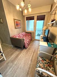 In condominio fronte mare - Sabbiadoro - vendesi appartamento al piano sesto completamente ristrutturato composto da ingresso, cucinino, camera matrimoniale, ampio bagno, soggiorno, terrazzo con vista mare. L'appartamento è dotato di impianto di climatizzazione e viene venduto completo dell'arredo esistente. Parcheggio condominiale.