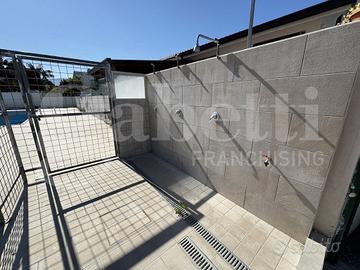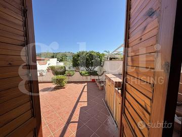 Giardino Retrostrante, in parte pavimentato a terrazzo, attrezzato anche di doccia esterna, un'oasi di verde per godere del sole e dell'aria aperta e di momenti conviviali; Veranda Antistante, spaziosa e ideale per pranzi all'aperto o momenti di relax.